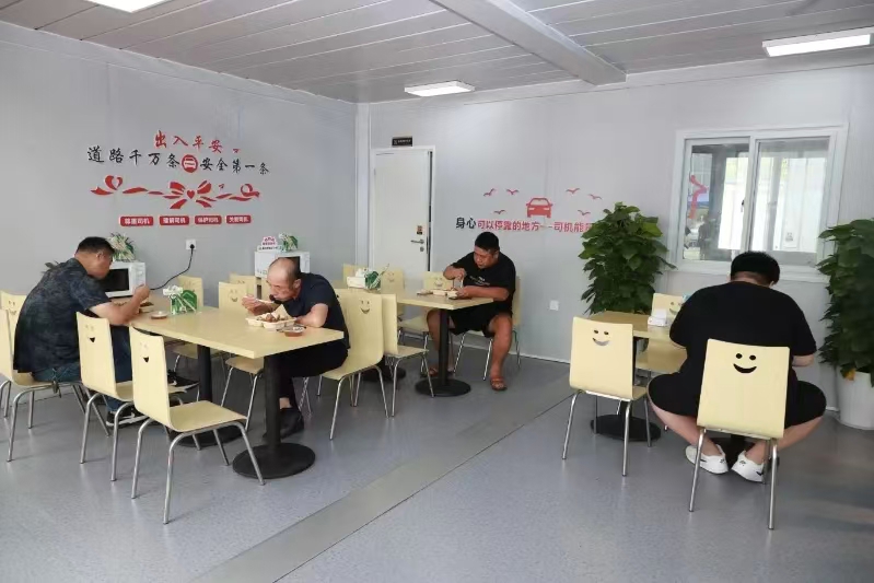 除了这些“暖心细节”,驿站里的休息座椅、自助冰箱等设施一应俱全。“洗个热水澡、吃口热乎饭、安心歇会儿,对我们天天在外面跑的司机来说,这些是最需要的。”马师傅坦言。